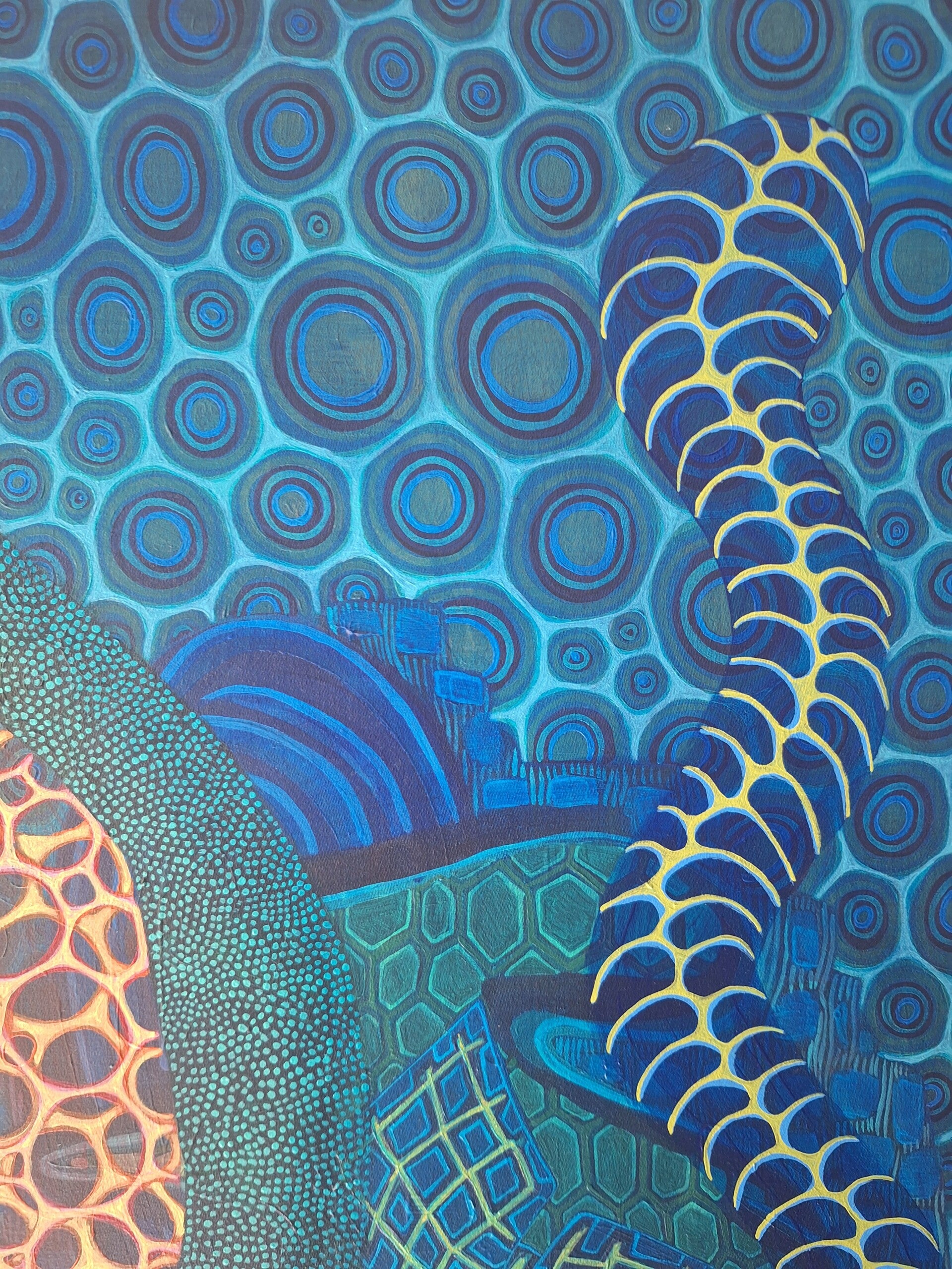 Linoprinting is a traditional relief printing technique in which an image is carved into a linoleum block. For me, it’s an ideal medium to explore — a playground for experimenting with different types of paper, bold or subtle color combinations, and layered compositions. The atmosphere and texture that arise from these elements often mean more to me than achieving technical perfection.